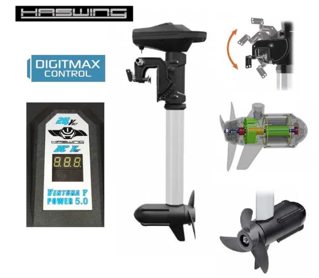 A Haswing Ventura egy újonnan kifejlesztett, távkaros 5 LE benzines motornak megfelelő teljesítményű elektromos motor. 24V teljesítményének köszönhetően kategóriájában rendkívül erős, üzembiztonságát a szénkefementes motor biztosítja.